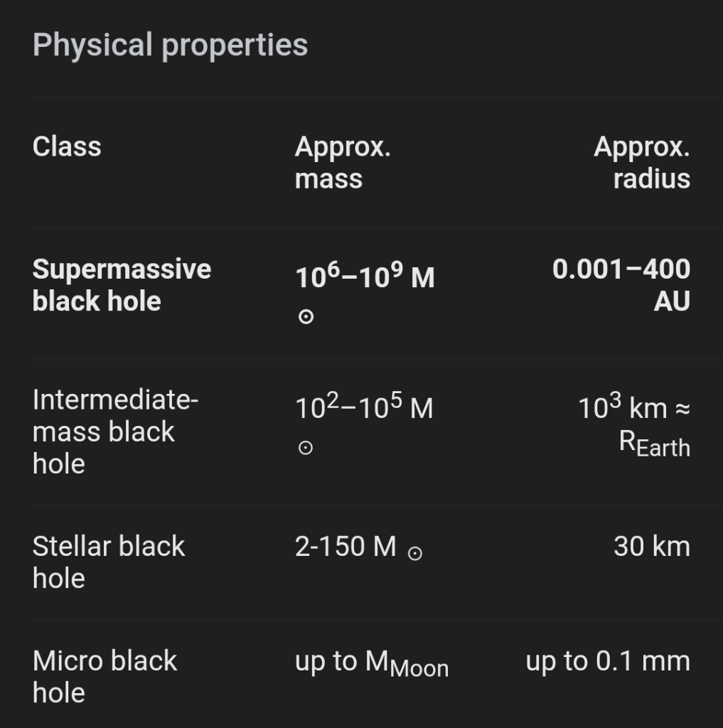 블랙홀의 크기는 질량에 비레합니다. 중력의 영향을 나타내는 값입니다.
