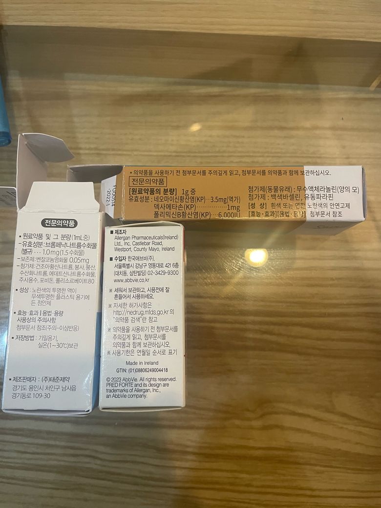 스테로이드 안약을 처방받고 오전 저녁 하루 2번 눈에 안약을 넣었는데 그 후에 몸 전체에 두드러기가 생겼습니다. 혹시 부작용일까요? 혹시 몰라 처방 받은 약 사진을 첨부합니다.