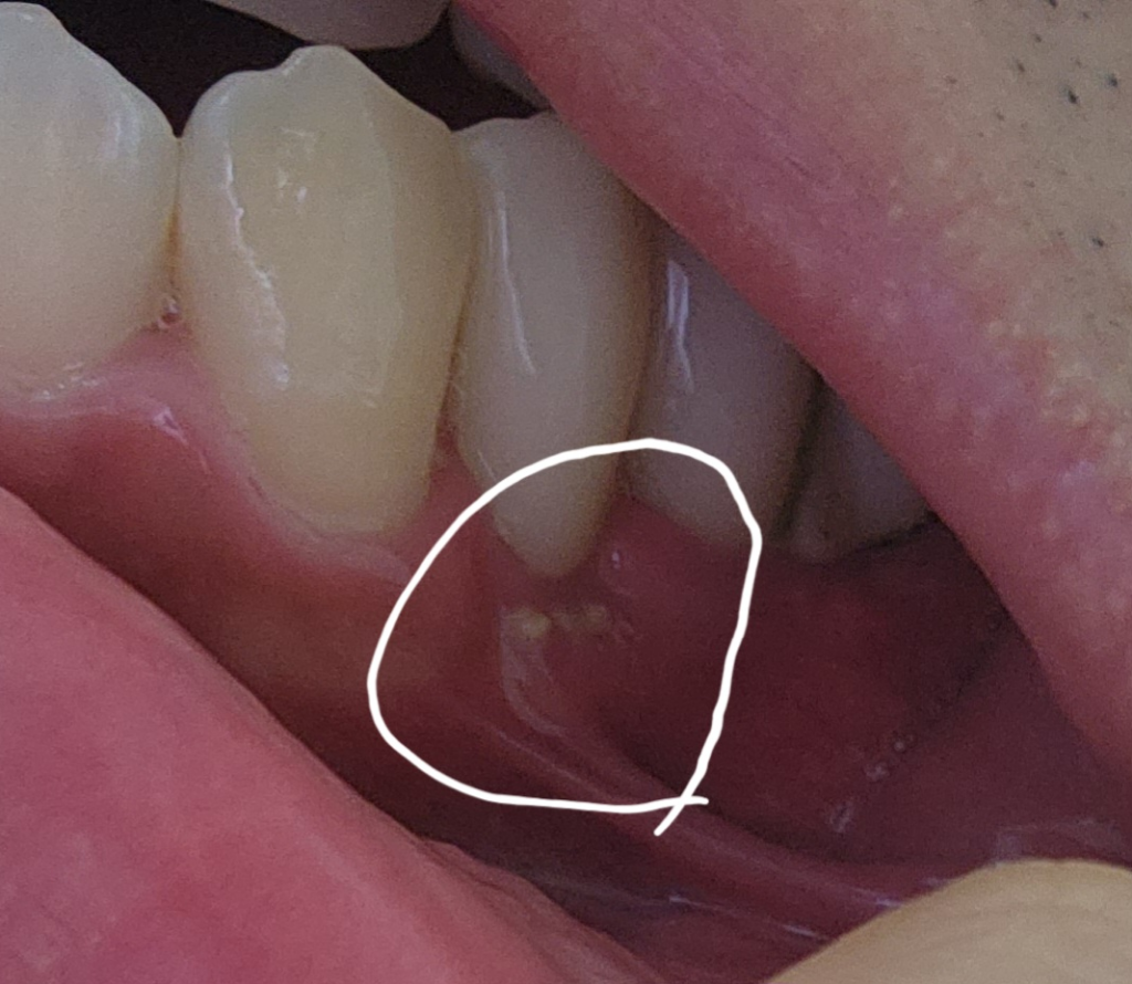 사진에 보이는건 뼈이식재료는 아니거 같고 부골인거 같습니다. 잇몸뼈가 과하게 증식되서 튀어 나온거 같으니 마취후에 제거를 하면될것같습니다 .