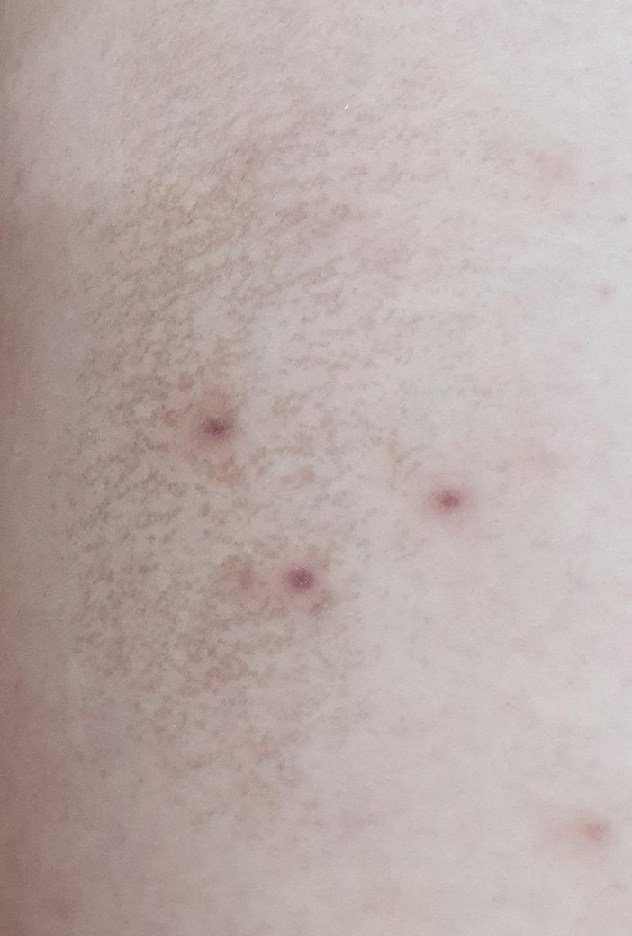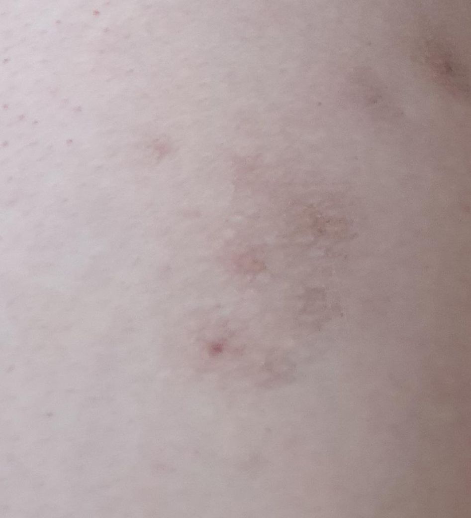 아토피가 있으며 허벅지에 붉은반점들이 많이 생기면서 잠결에 긁었다가 피 터지고 상처들도 감염되고 아물면서 피부주변에 검은색이 생겼는데