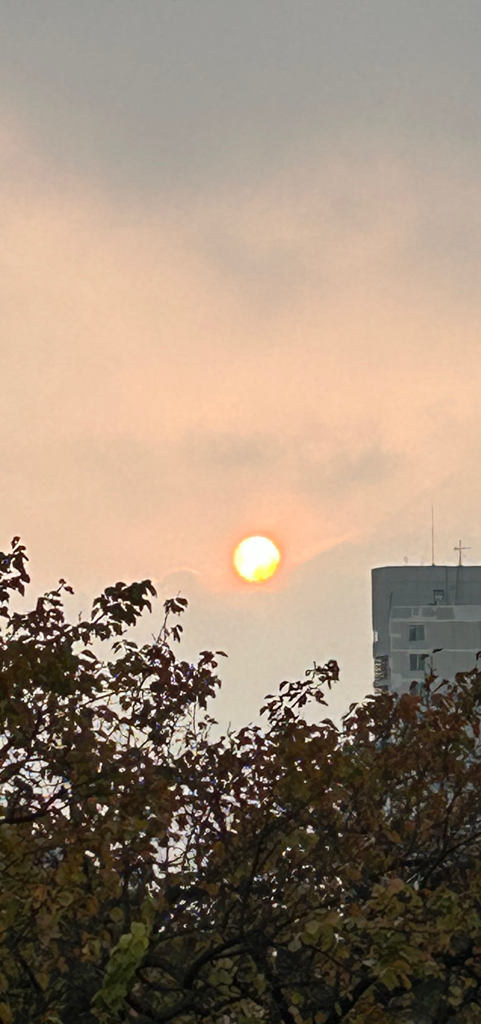 지금 사진으로 볼 때 해입니다. 사진처럼 해를 볼 수 있는 것은 구름의 영향입니다. 구름이 태양빛을 감소시켜 맨눈으로도 볼 수 있는 것입니다.