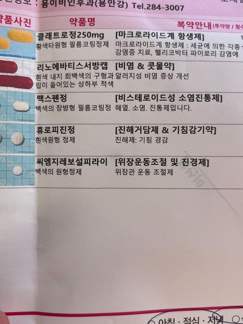 클래트로정250mg가 항생제이긴 하지만 처방받으신 약들은 휴약기에 복용하실 수 있습니다