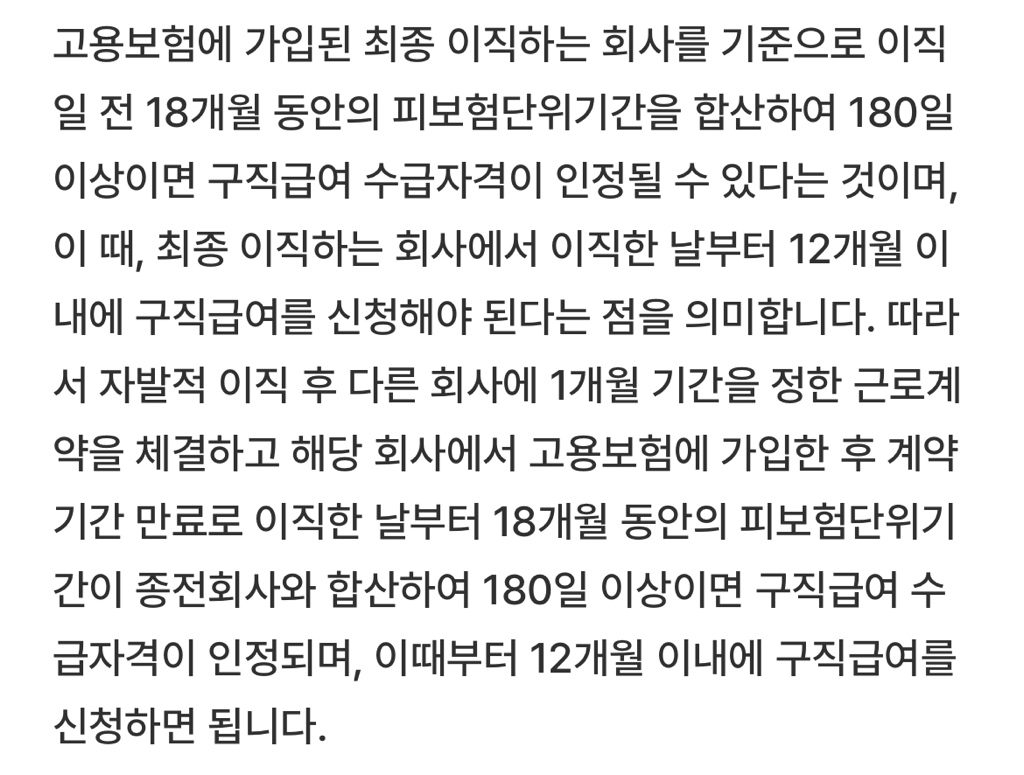 무조건 2월달에 새로운 단기계약직 활동을 해야 실업 급여를 받을 수 있다는 것인지 18개월 이내, 7월 전에만 활동하면 받을 수 있다는 것임지 궁금합니다. 감사합니다.
