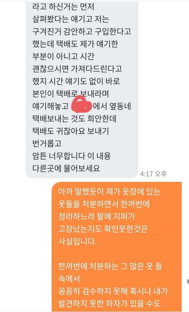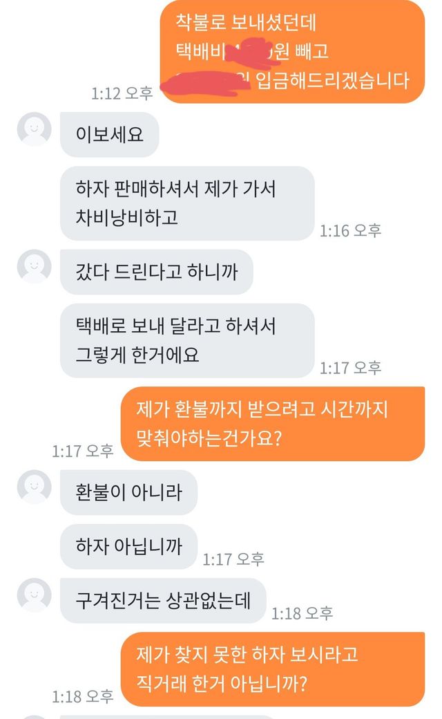 인간적으로 죄송해서 환불은 진행됐고 택배비는 반반 부담으로 마무리 됐습니다.