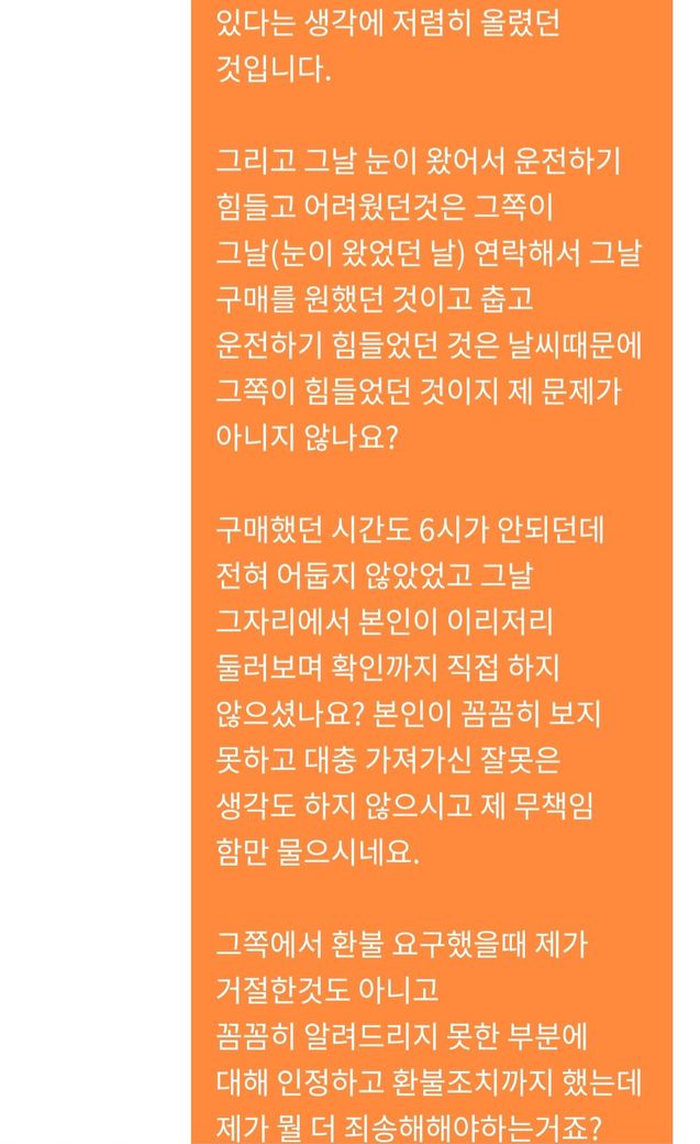 3. 만약 교환.환불진행이 가능하더라도 제가 알기론 '물건에 하자가 있을때, 구매당시 구매자의 과실이 있었을때에는(알았거나 알 수 있었을때에는) 구매자 과실로 인해 환불을 진행하지 않았어도 된걸로 아는데...