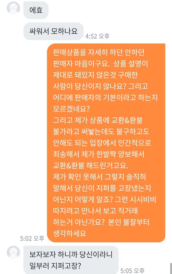 돈을 떠나서 사기꾼 취급받는게 기분이 매우 불쾌해요.