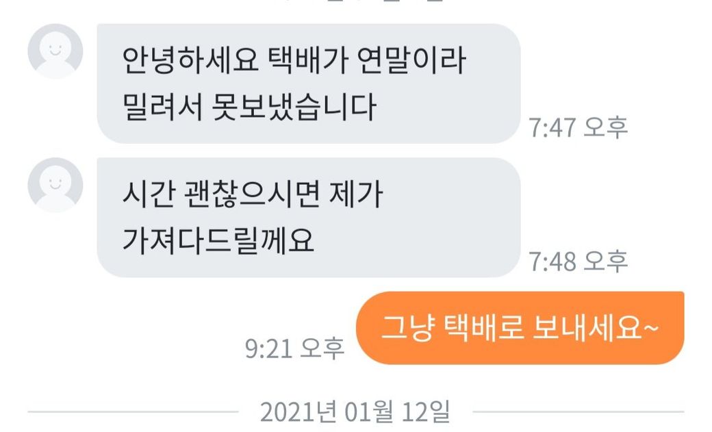 제가 택배로 보내달라고 했습니다.
