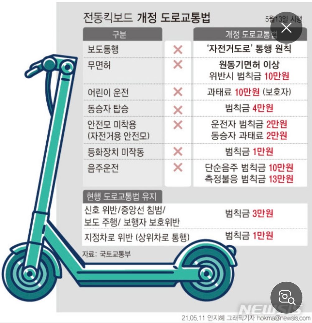 지쿠터 타고 가다가 벌금 부과받았습니다.