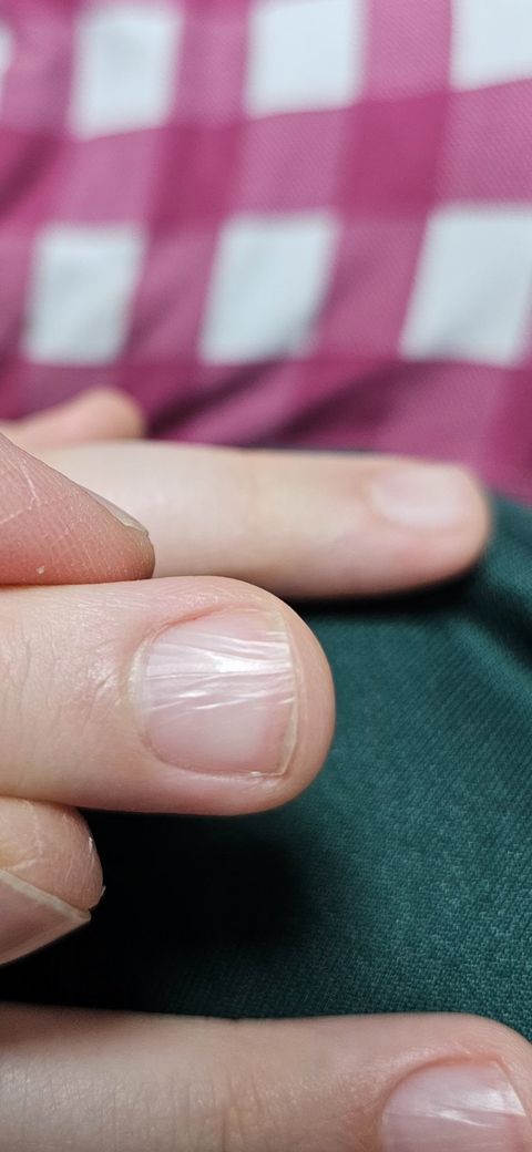 손톱이형성증이 관찰되며, 원인은 굉장히 다양합니다. 단순한 영양 부족만을 의심하다가 질환이 더 진행할 여지도 있으니 가까운 피부과에서 전문적인 진료를 받아보시는 것이 좋겠습니다.
