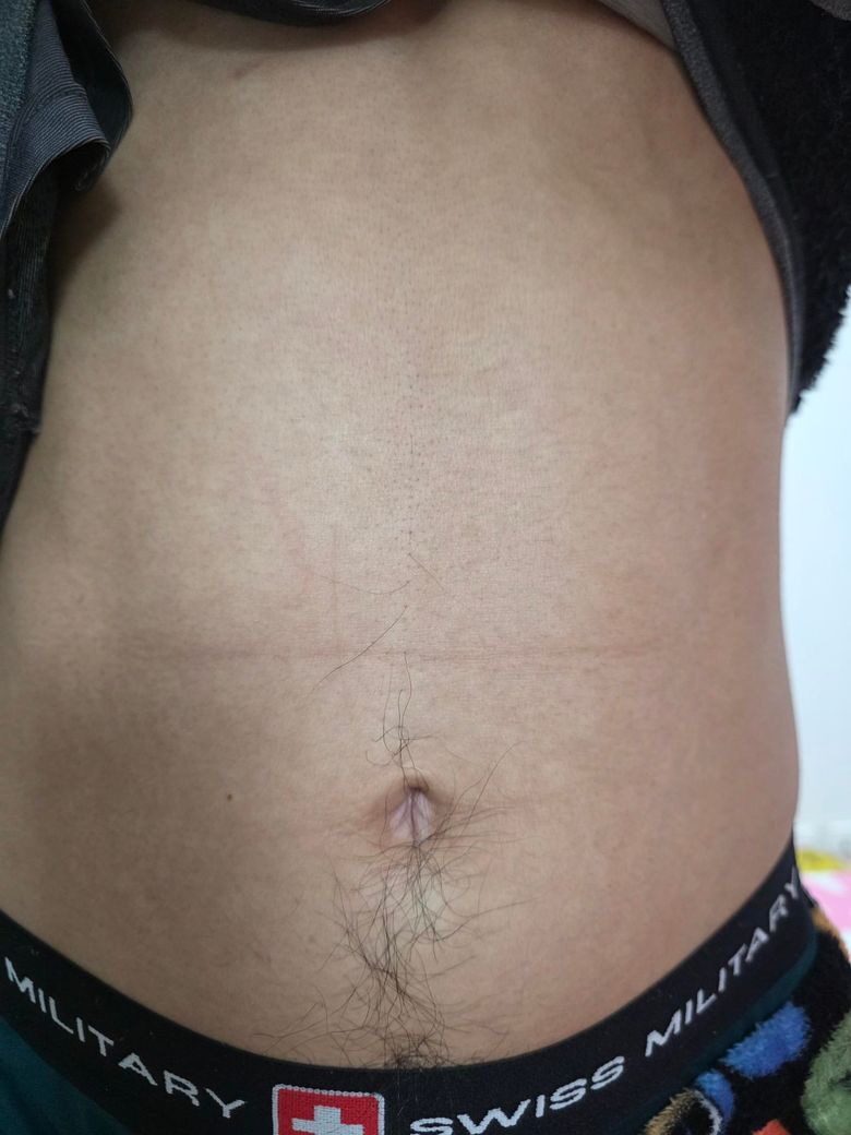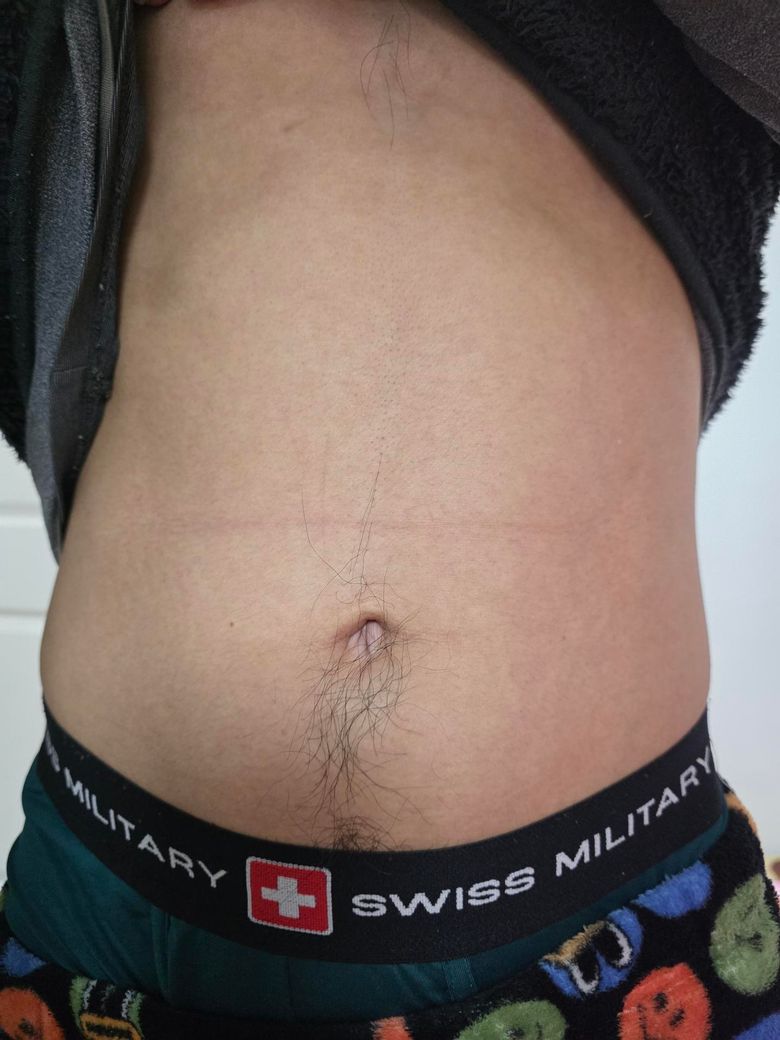 배가 비스듬히 보이는 현상은 복벽 비대칭, 자세, 복부 팽만, 장내 가스 분포 등에 의해 흔히 나타날 수 있습니다. 영상검사에서 종괴나 복벽 탈장 등이 배제되었다면 구조적 이상 가능성은 낮습니다.