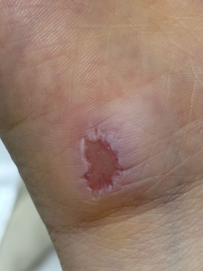 올려주신 사진으로 미루어 상처 주변 염증 소견은 없어 보이므로 상처연고를 바르고 지금부터라도 습윤 밴드를 부착하시기 바랍니다.