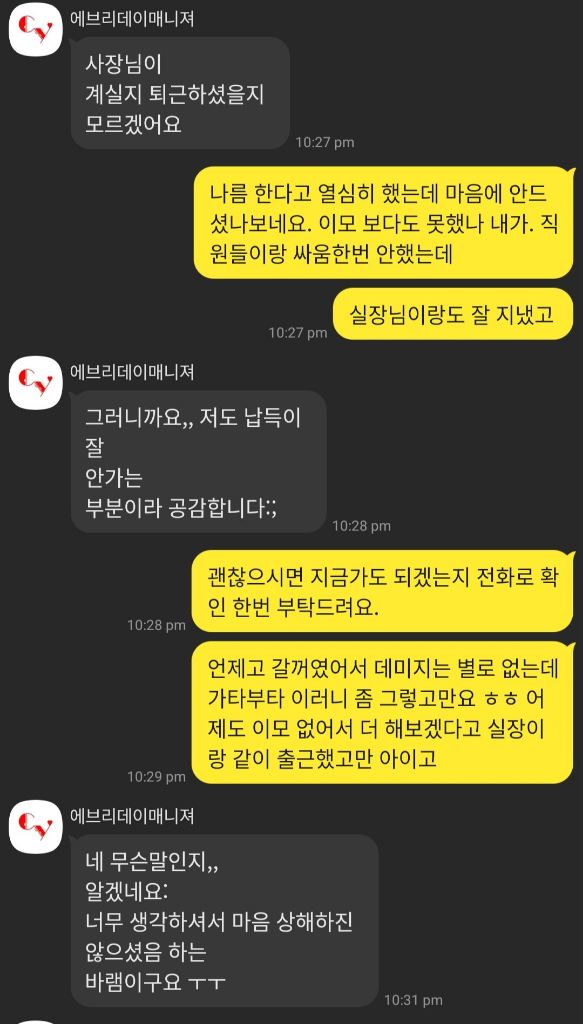 한달간 착실히 하루도 빠지지않고 근무 후 오늘 늦잠을 자 통화 후 한시간 여 늦은 출근을 하려는 찰나