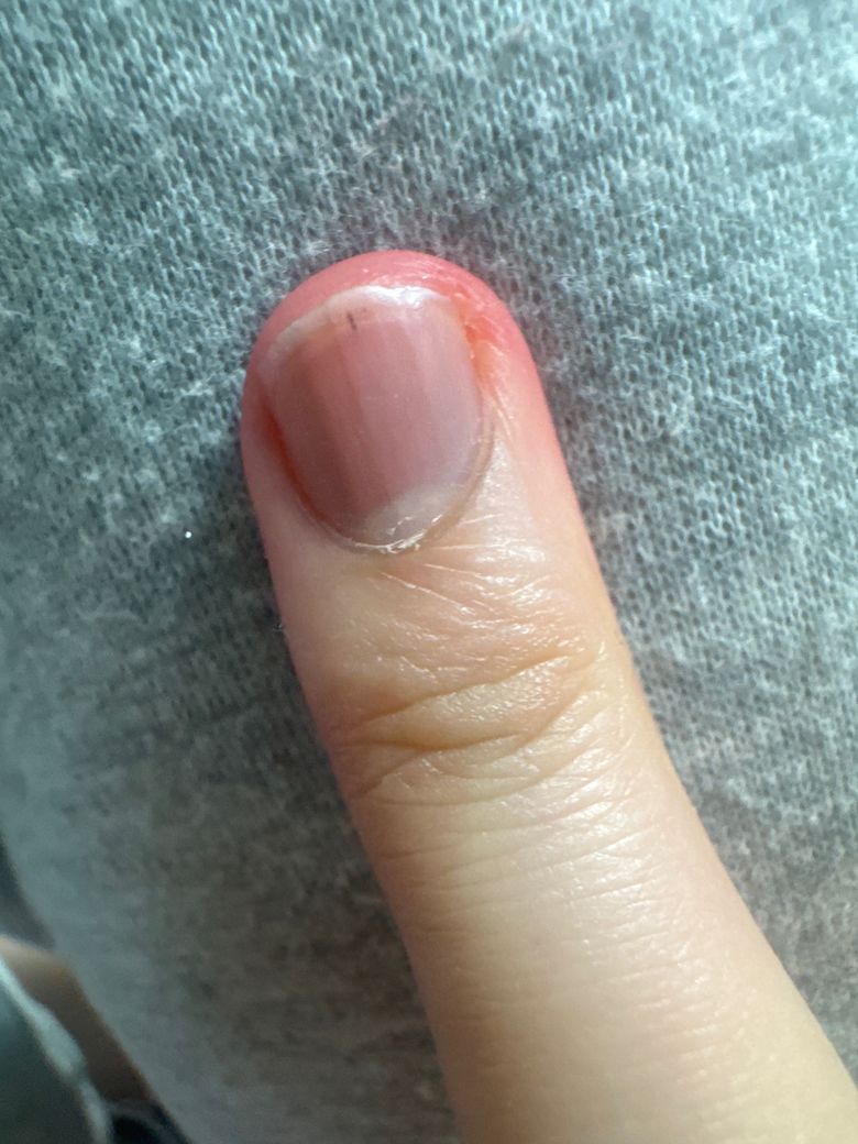 다만 색이 점점 진해지거나 폭이 넓어지는 경우, 손톱 뿌리에서 시작해 위로 길게 이어지는 형태로 변하는 경우, 주변 피부까지 착색이 퍼지는 경우에는 피부과 진료를 권합니다. 현재로서는 심각한 질환 가능성은 낮아 보이며, 손톱을 물어뜯거나 반복적으로 자극하는 습관이 있다면 교정하고 2개월에서 3개월 경과를 관찰해 보시는 것이 적절하겠습니다.