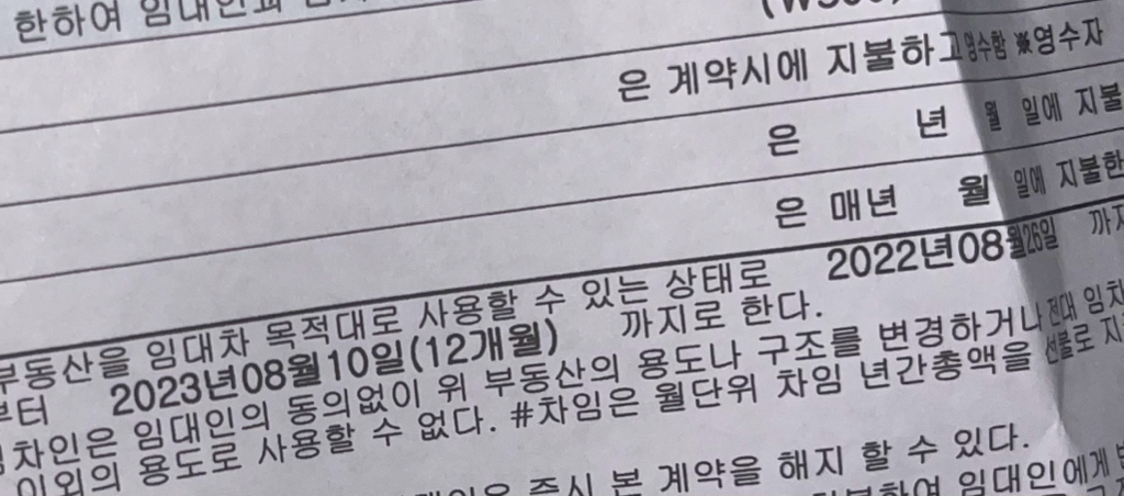 계약서에 보면 계약기간뒤에 (12개월)이라고 명시가 되어 있습니다. 이는 23년 8월10일까지 임대기간을 정한바가 없으면 공인중개사의 오타로 보여집니다. 임대인에게 위 사실을 알리시고 8월25일까지가 임대기간이라는것을 확실히 해둘 필요가 있습니다.