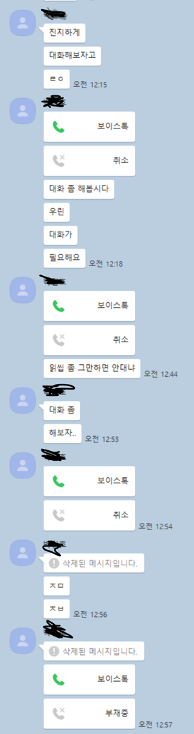 모든 내용은 카카오톡 메세지로 남아 있습니다.