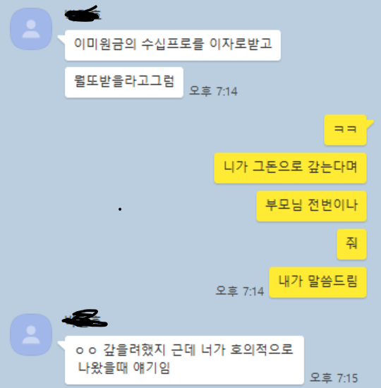 [오후 7:14] 니가 그돈으로 갚는다며
