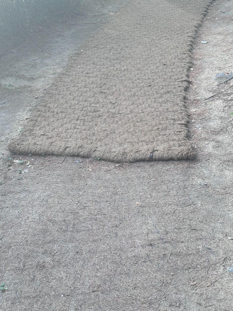 야자 매트라고 합니다 흙길이다 보니까 비가 오거나 눈이오면 질척질척해져서 깔아놓기더하구요. 기본적으로 미끌럼 방지용으로 깔아놓고있어요. 길뿐만 아니라 등산로 입구에 가면은 이런 야자 매트가 정말 많이 깔려져 있는 것을 확인할 수 있을 겁니다