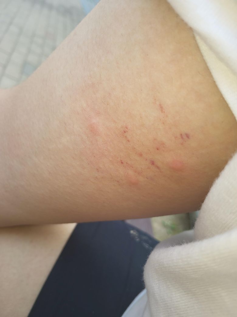 빨갛고 동그랗게 융기된 세 곳으로 추정되는 병변의 경우는 벌레에 물려서 생겼을 가능성이 큽니다.