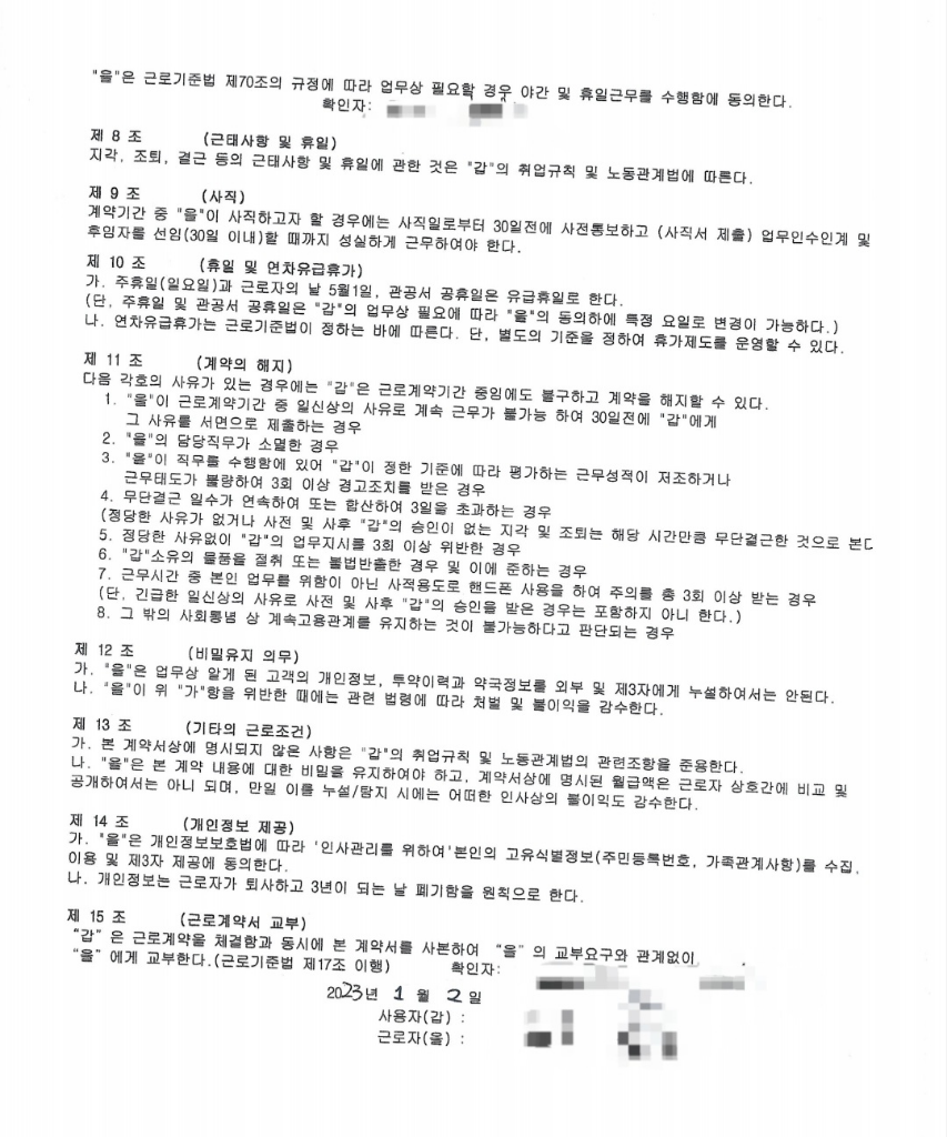 1. 계약서 상 문제가 될 조항이나 제가 노동청에 신고넣을 사항이 혹시 있으시면 알려주시면 감사하겠습니다.