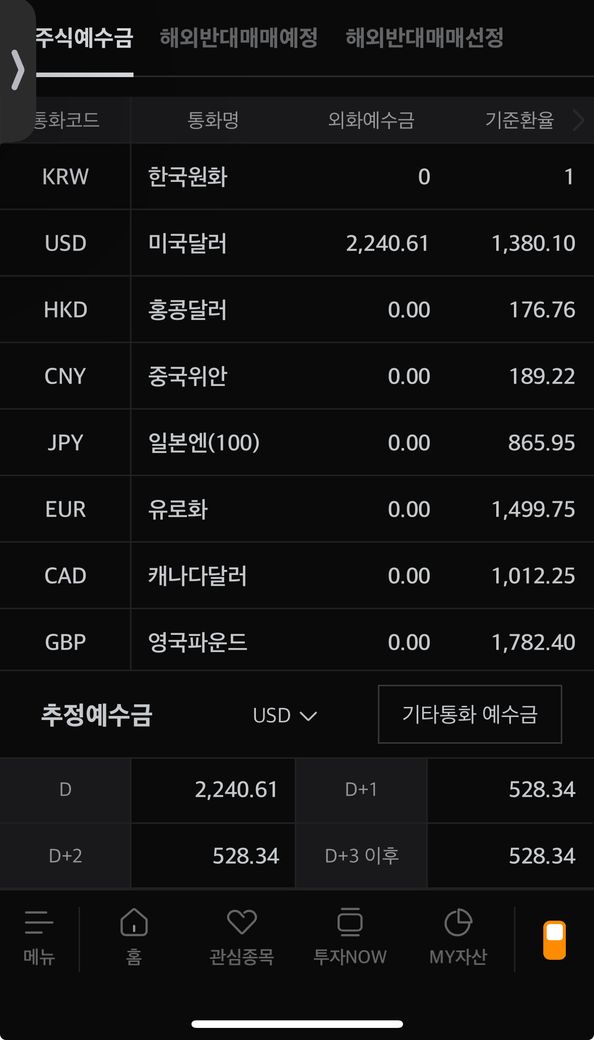 1. 미국달러로 환전해 놓은게 2240달러라고 되어있는데, 왜 주문가능 금액은 448달러인가요?