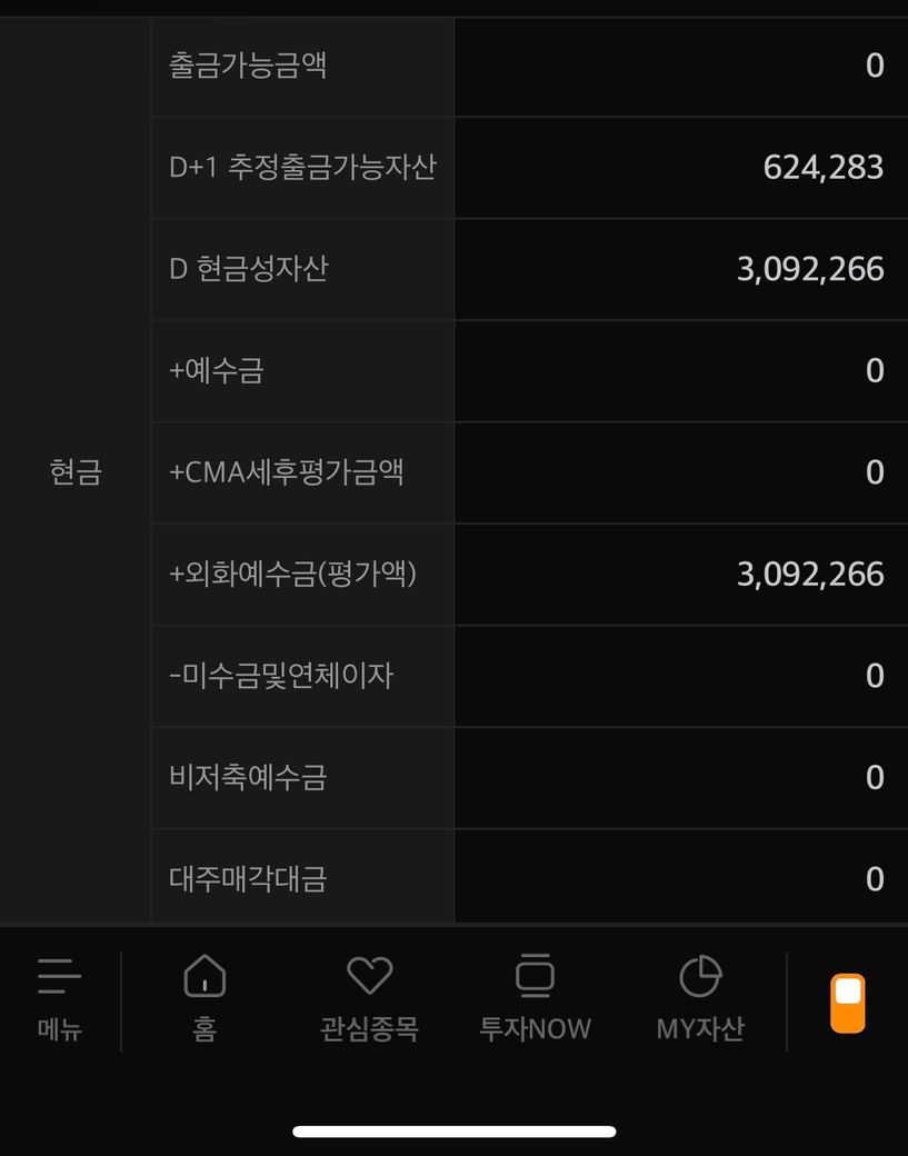 2. D 현금성자산, 외화예수금(평가액)은 무슨 뜻인가요?