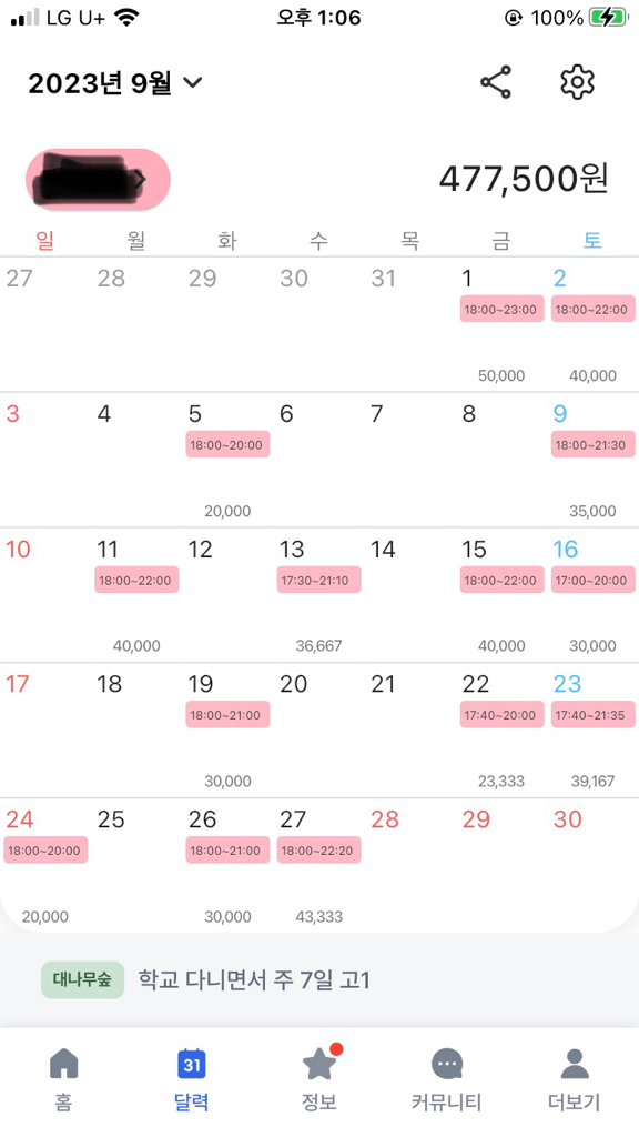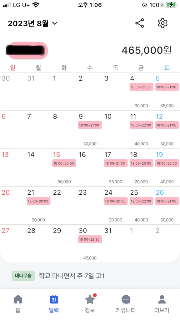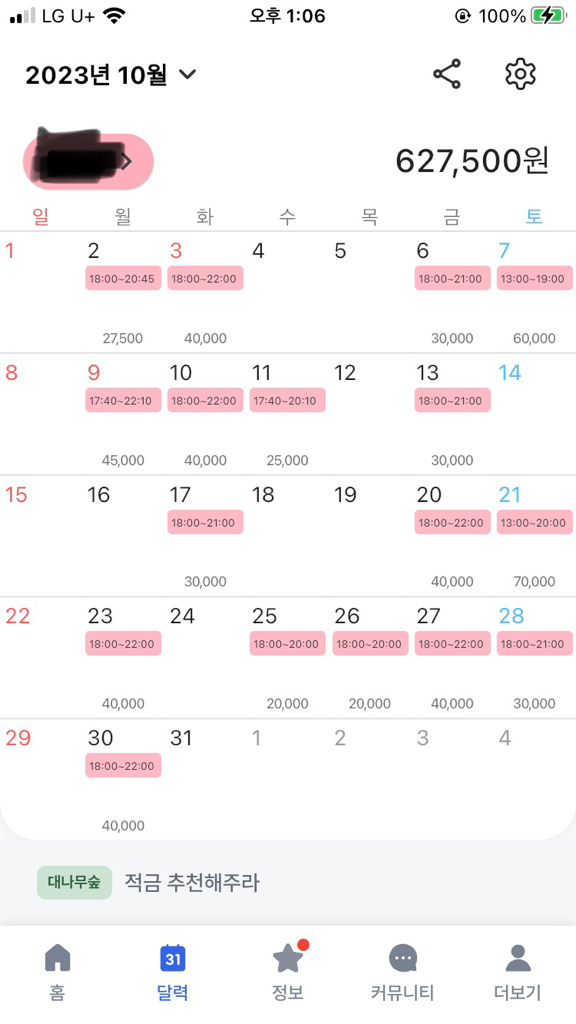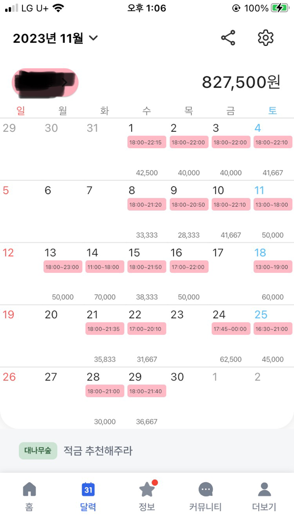 근로시간이 유동적인 경우에는 주 근로시간이 15시간 이상인 주의 근로시간*시급/5로 계산하면 됩니다.