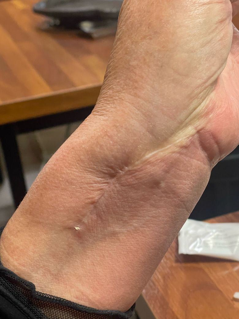 사진으로 보이는 부위는 흉터가 안정된 상태지만, 말씀하신 따갑고 저린 통증은 신경 자극이나 유착때문일 가능성이 높습니다. 수술 후 수개월간 이런 감각이 남는 경우도 많으며, 손목 스트레칭 및 유착 이완 치료와 신경 회복을 돕는 물리치료를 병행하면 점차 완화됩니다.