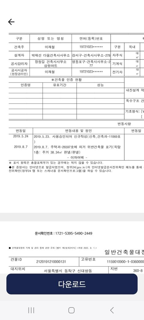 건축물 대장 상으로 위반건축물이라고 되어있어요.