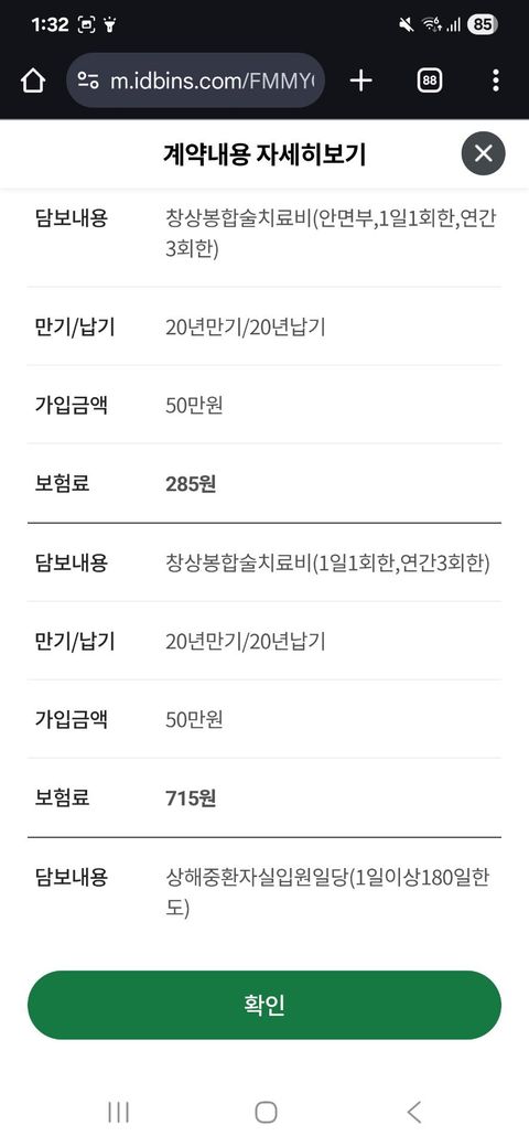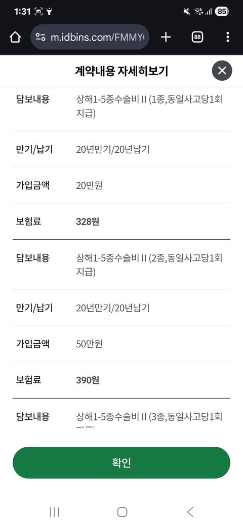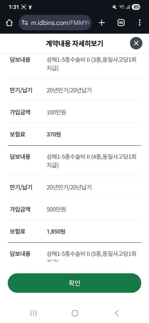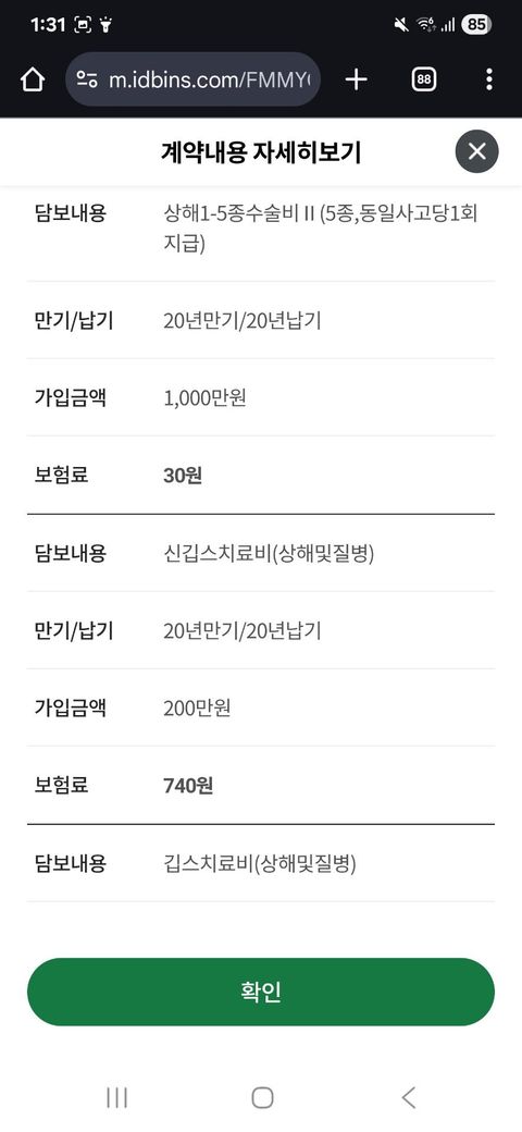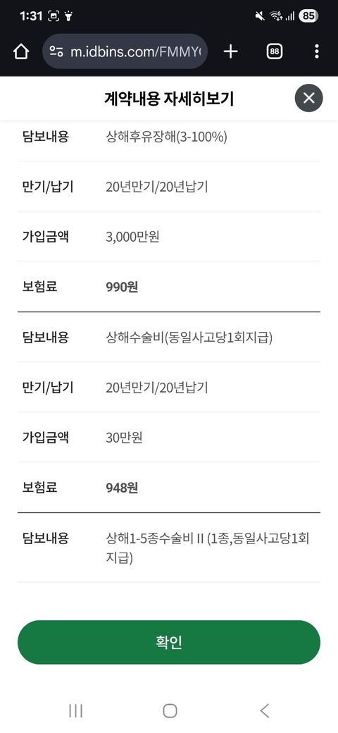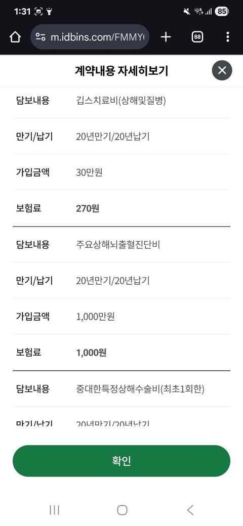 포함하면서 상해 후유장해 및 상해 수술비 등 다른 담보도 가입이 되어 있어서 보험료가 조금은 고액인