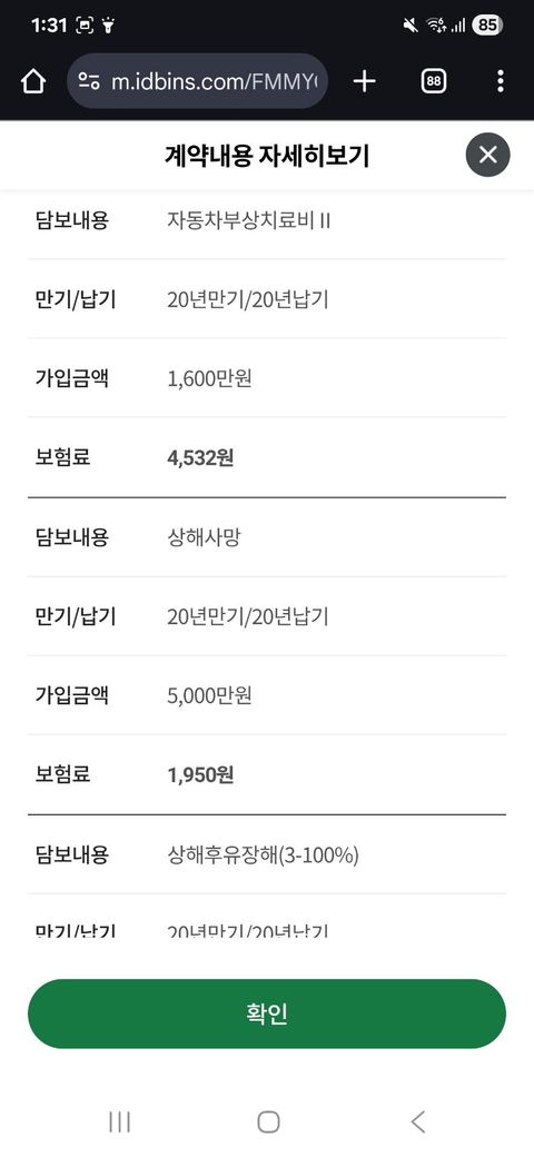 운전자 상해 보험에 가입돼있어요 가격도 꽤 나가서