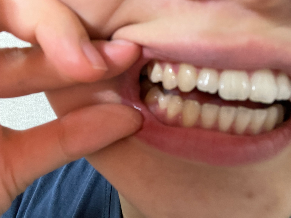 치아 교모가 다소 있는 양상이며 이악물기 등이 원인으로 작용했을 수 있습니다. 일단, 평상시 생활할 때 부드러운 음식 위주로 드시고 딱딱한 음식은 피하시고요. 턱관절부위 온찜질도 해주시면 좋습니다.