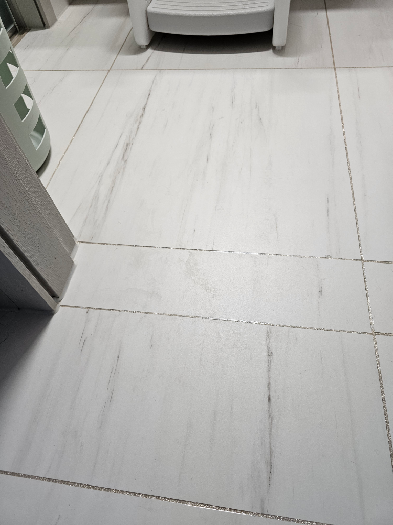 반짝거리게 코팅된 타입이 아니구 매트한 느낌에 바닥 타일인데 오염된부분이 물걸레로 문질러도 잘 제거가 되지않습니다. 새집인데 이럴경우 하자 처리해서 오염제거 요청하면되나요?