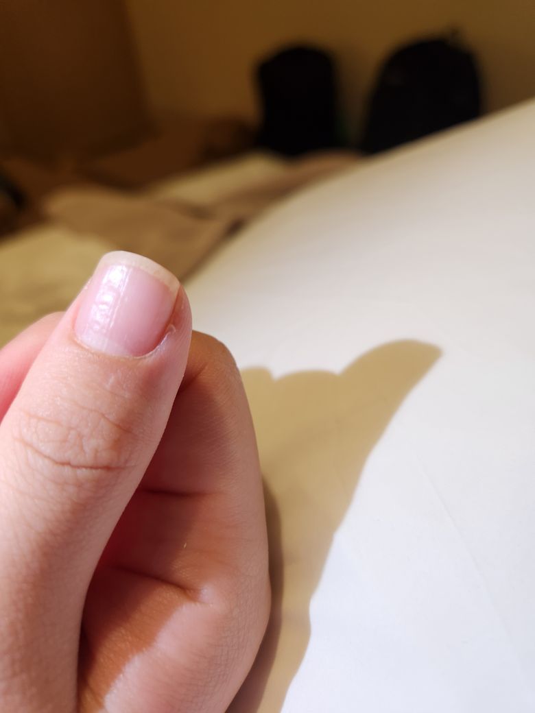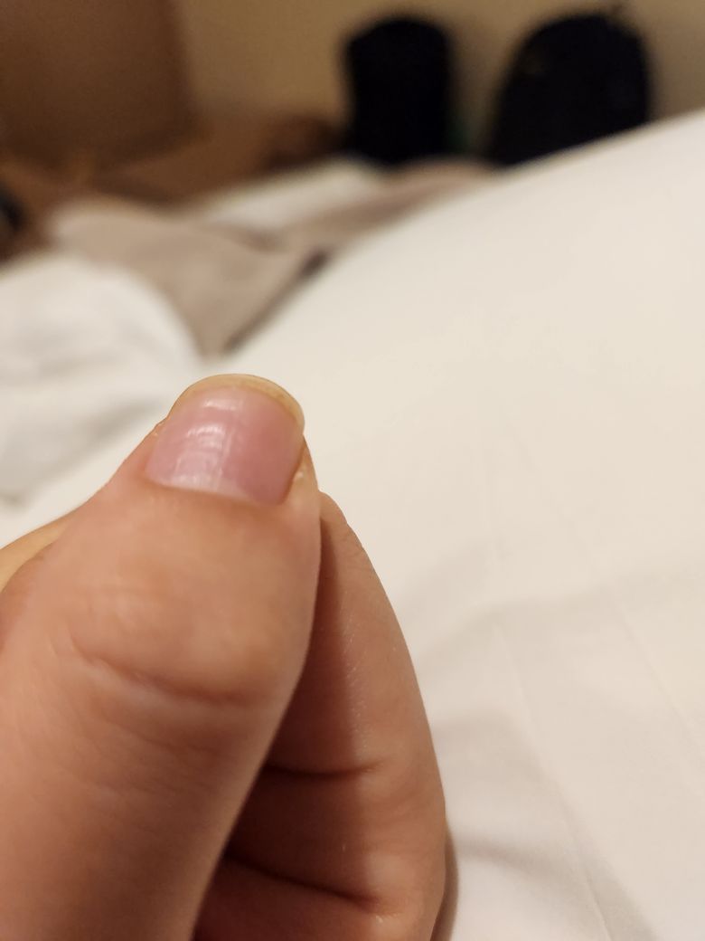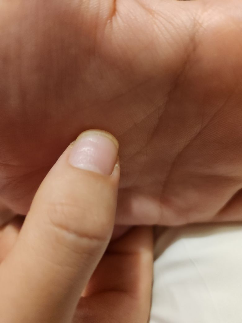 엄지손톱이 사진처럼 울퉁불퉁하고 동그랗게 패여있습니다 다른 손톱들은 다 일반 맨질한 손톱 같습니다.