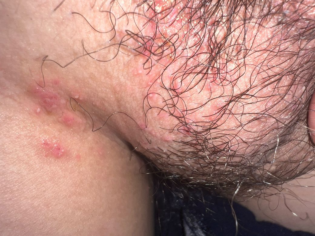 질환에 대한 감별이 필요하며 STD PCR과 같은 추가 검사가 필요할 수 있습니다. 또한 모낭과 사타구니 근처에