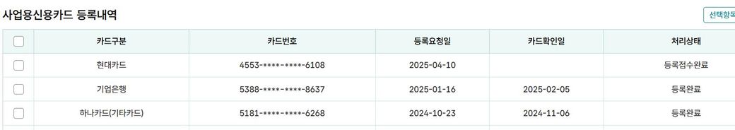 개인사업자 신용카드 홈택스 등록시 '등록요청일'과 '카드확인일'차이