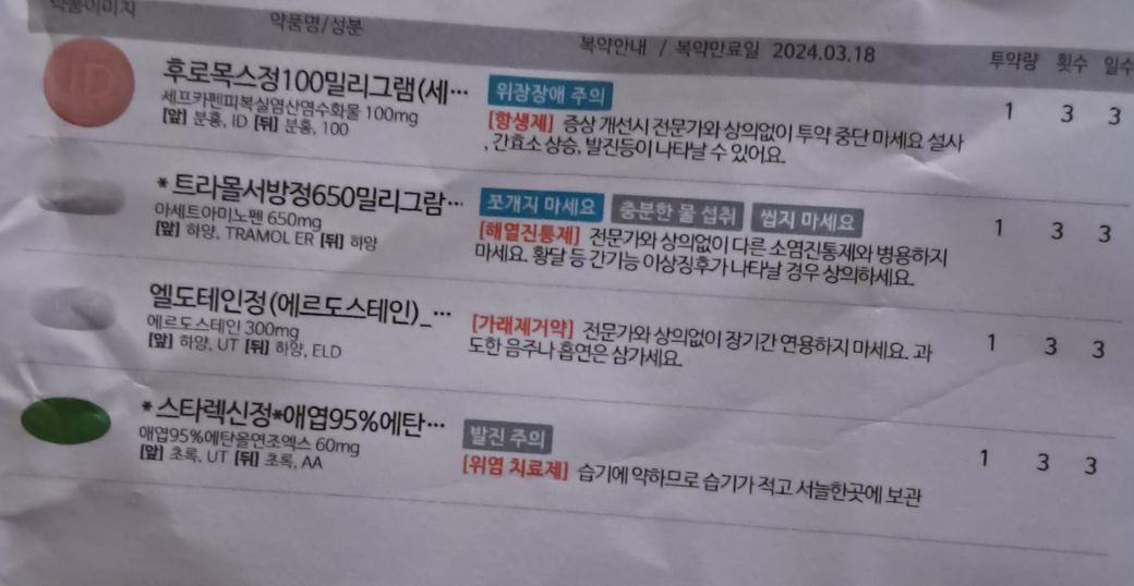 처방약에 함유된 트라몰서방정이 타이레놀과 동일한 약입니다.