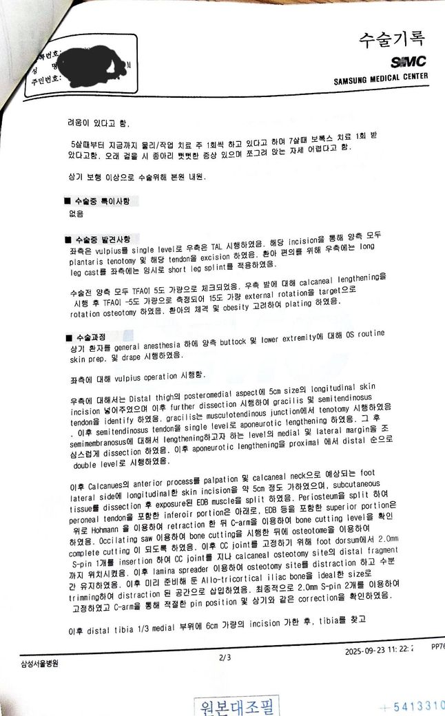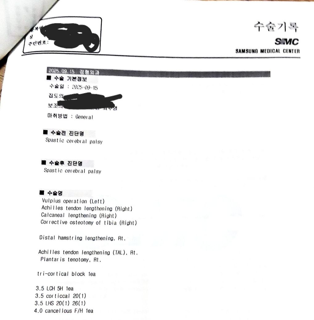 저희아이 수술기록지해석 부탁드립니다