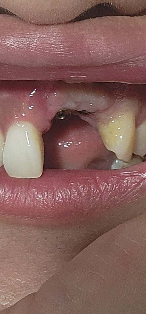 아직은 잇몸이 다 아물지 않앗기 때문에 그렇습니다 .시간이 지나면 괜찮아 질테니 너무 걱정하지마세요.