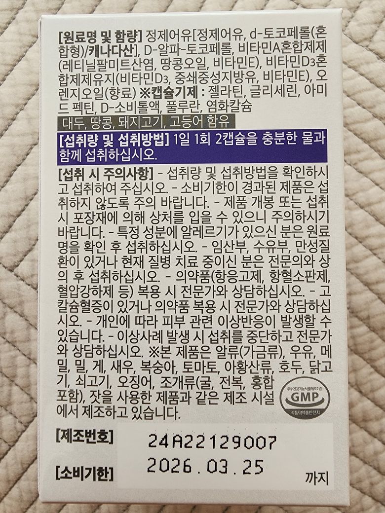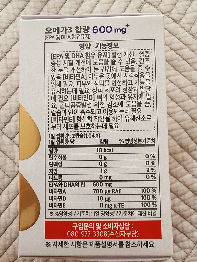 위에 보여주신 오메가3 제품에는 비타민A 성분이 포함되어있기 때문에