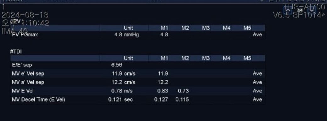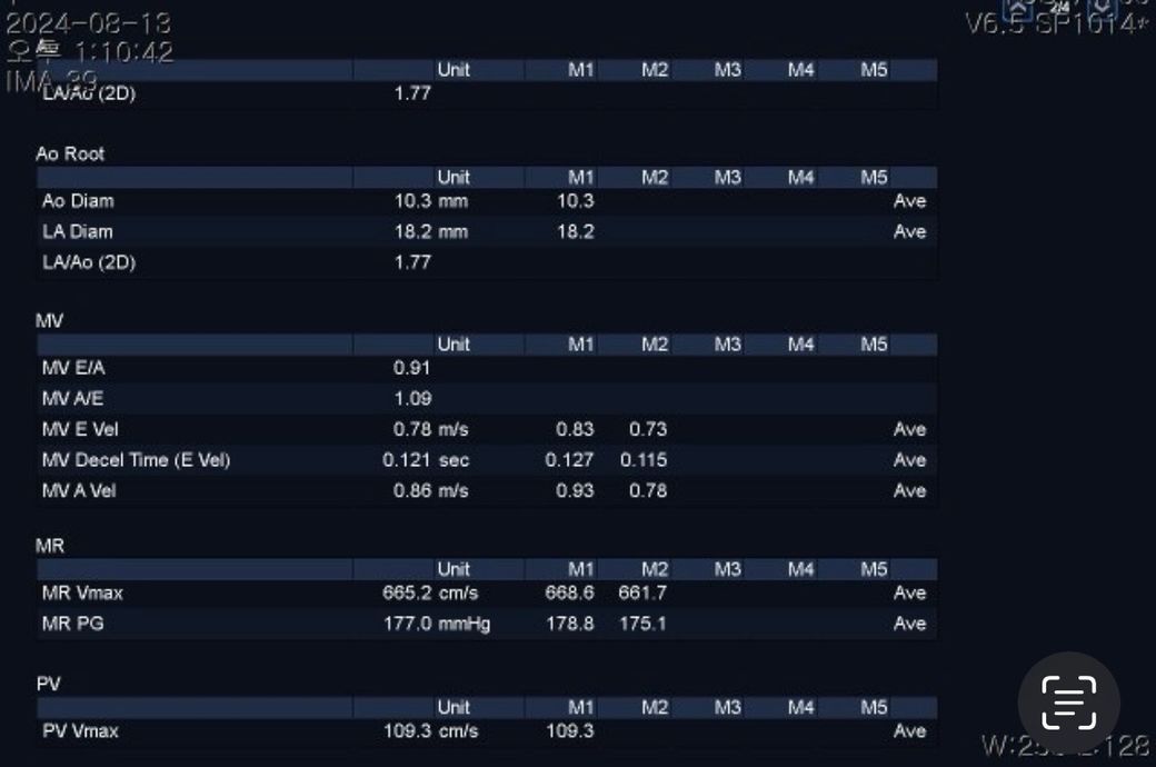 심초음파 결과 첨부드리고, 사람이랑 달라 해석이 어려워 판독 도움 요청드립니다.