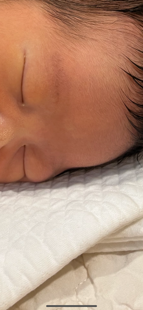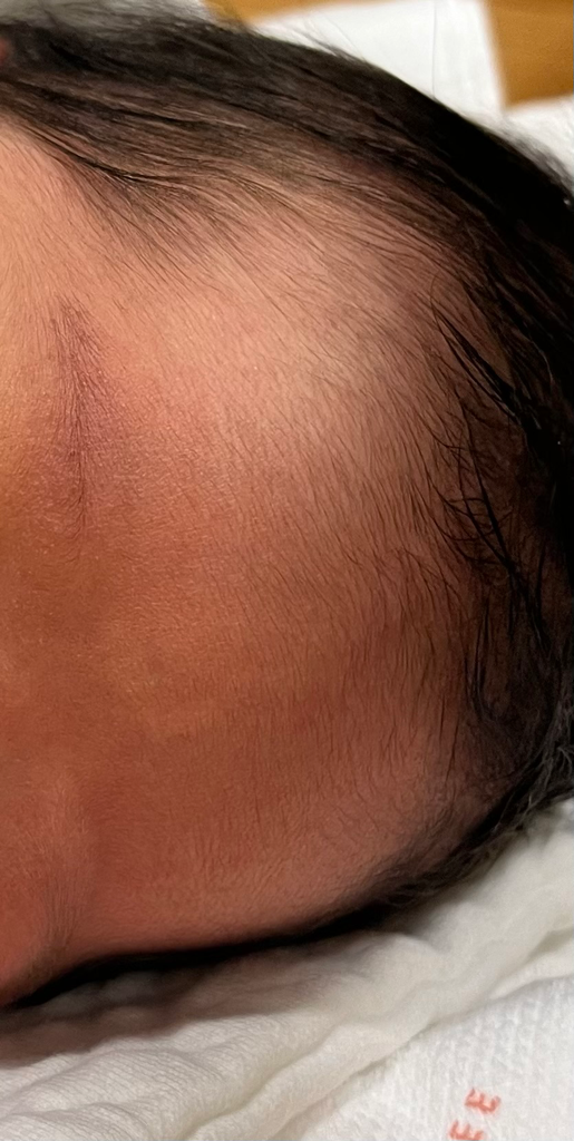 아기 이마 태어날때부터 하얀점? 하얀선? 처럼 보이는데