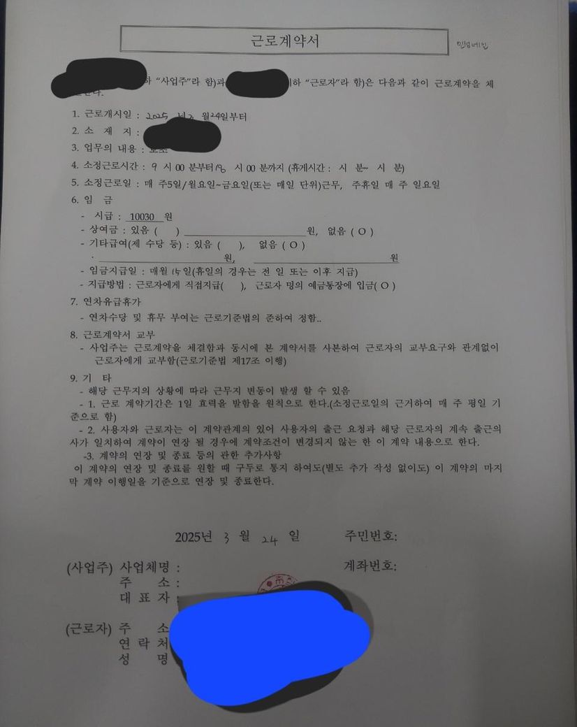 이거 신고해서 돈 받거나 다른 처벌 어렵나요? 밑에는 근로계약서 내용입니다