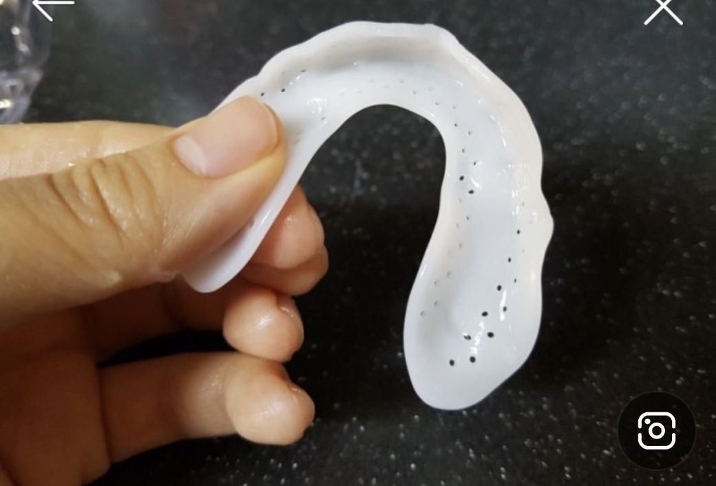 사진으로 보이는 마우스피스르 오래 사용하게 되면 치아의 이동으로 인해서 교합에 변형이 올 수 있기 때문에 오랜시스간 사용을 권유하진 않습니다.