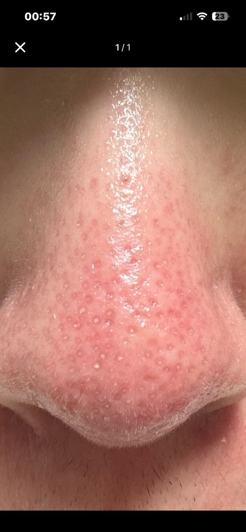 사진 소견은 염증성 여드름보다는 개방면포(open comedone)와 피지선이 확장된 상태, 이른바 sebaceous filaments가 혼재된 모습에 가깝습니다. 이 구조물은 병적 병변이라기보다 피지 분비가 많은 지성 피부에서 정상적으로 반복 형성되는 경우가 많아 “완전 제거”는 현실적으로 어렵고, 주기적 조절이 목표가 됩니다.