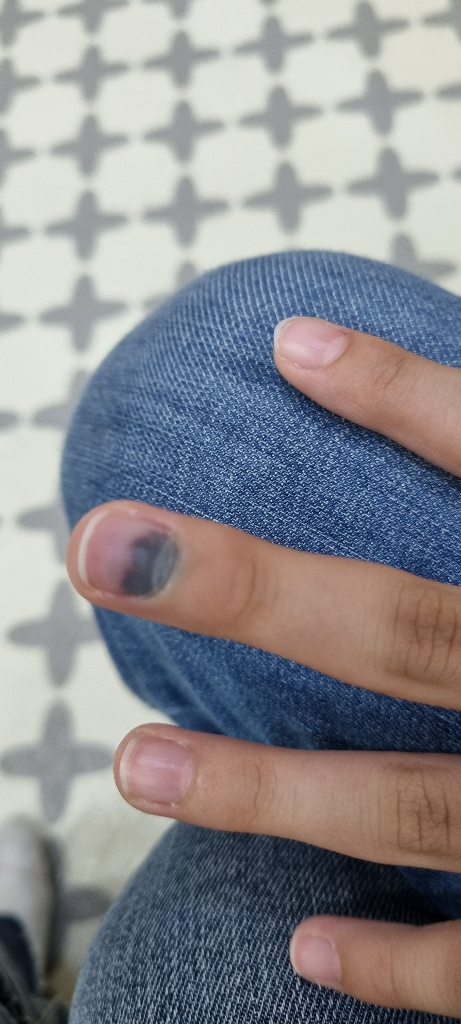 아이가 손을 다쳐서 걱정스러우시지요. 멍이 든 정도를 보아 손톱이 빠질 위험도 있을 것으로 보입니다. 정형외과를 방문해 진찰받아보실수 있겠으니 방문을 고려해보시기 바랍니다.