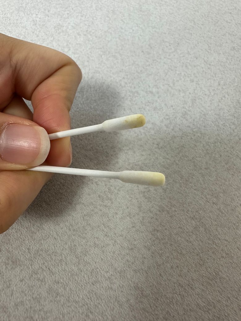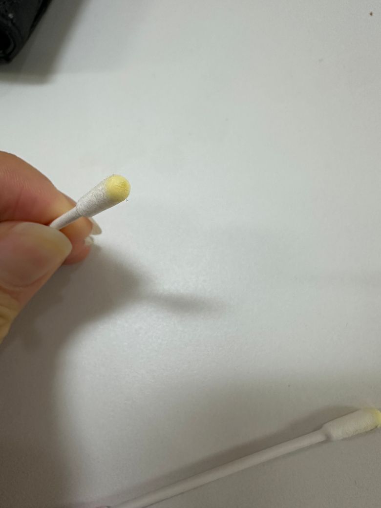 어때보이시나요? 양쪽다인거같지않나요? 면봉에 갖다대면 촉촉해여