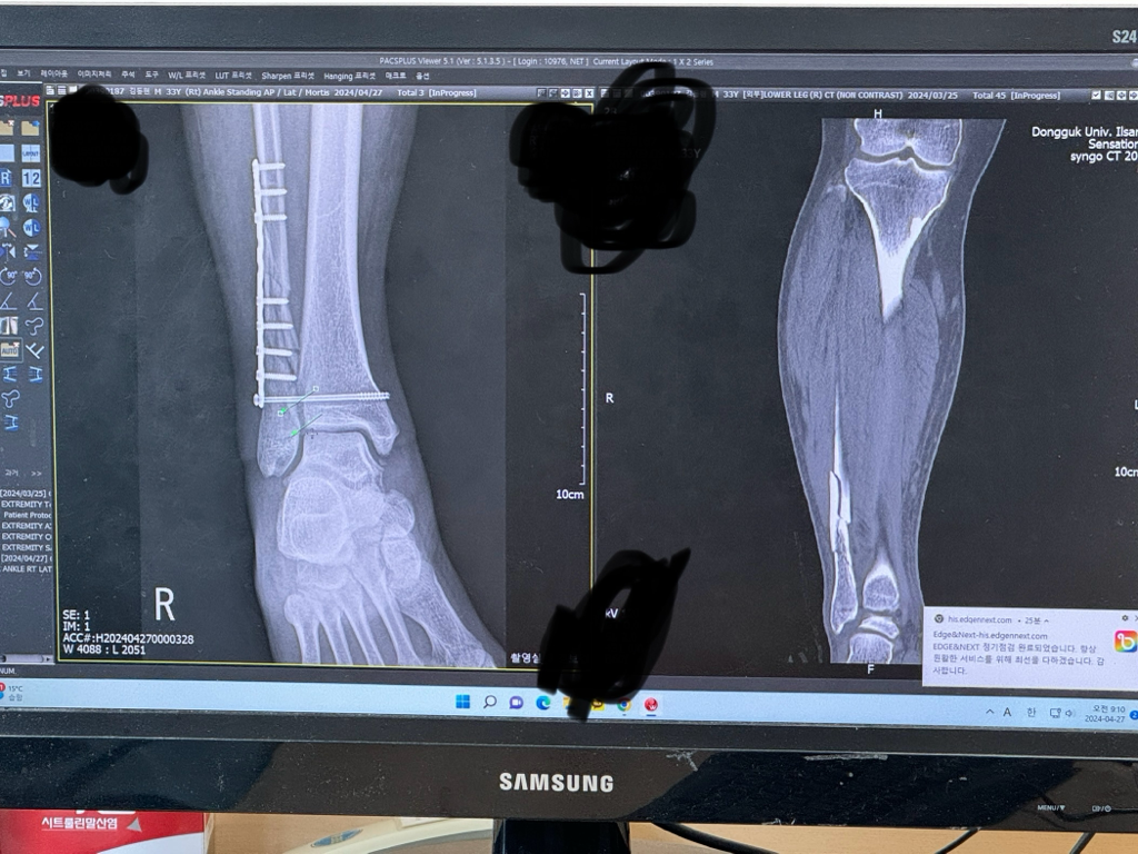 발목 원위부골절 수술 후 문의드립니다