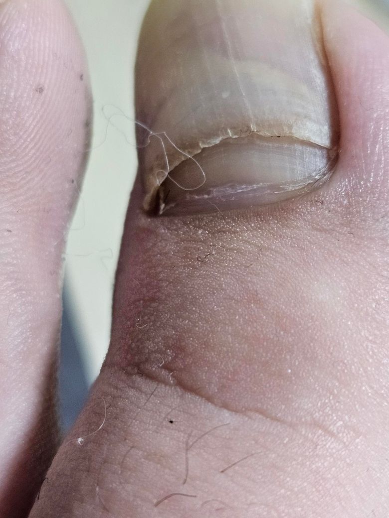 병태생리적으로는 발톱을 크게 찧으면 조갑하 혈종이나 조갑 기질 손상이 생기고, 이후 정상 발톱이 아래에서 새로 자라면서 기존 발톱을 밀어내는 형태로 진행합니다. 이 과정에서 층처럼 갈라지거나 들리는 모습이 흔히 관찰됩니다.