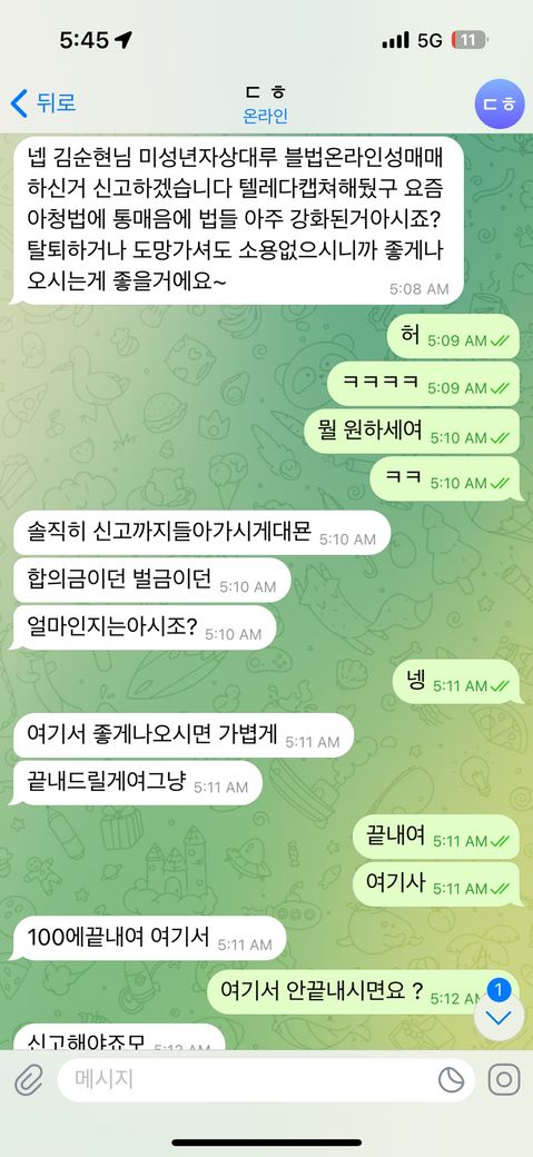 미성년자 상대로 불법온라인 성매매 신고하겠다