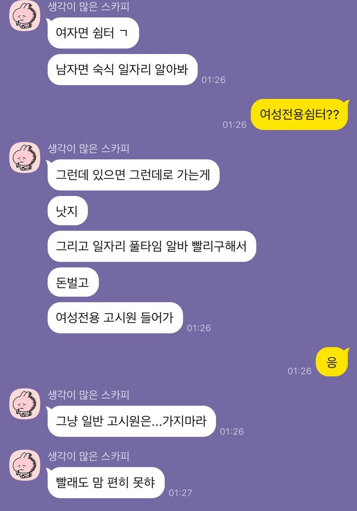 실제 대화 내용 보니 많이 신경 써주는 모습 보입니다. 우리사회는 사람관계 필수적으로 요구하는 경우도 있고 특히나 내 고민거리 생겼을 때 들어주고 공감해주는 사람 요구하지만 현실적으로 만나거나 없는 경우 오픈 채팅 통해서 고민 얘기하면 상대방은 들어주고 조언이나 감정 공감해주는데 실제 만남으로 이어지지 않으면 좋은 소통 방법이라고 생각합니다. 단 내 고민 들어주고 공감해주며 방향 제시 하더라도 완전 믿음 가지지 않으며 내 기준은 무조건 지킨다는 신념으로 활용하는게 좋다고 생각합니다.